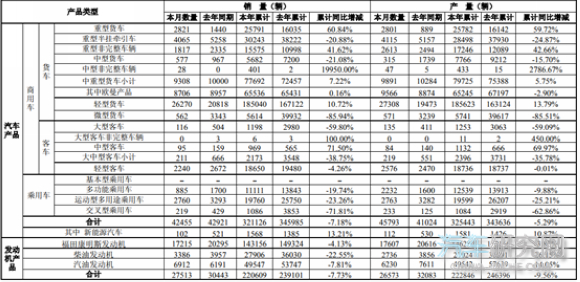 附件:福田汽车2018年7月份各产品产销数据快报