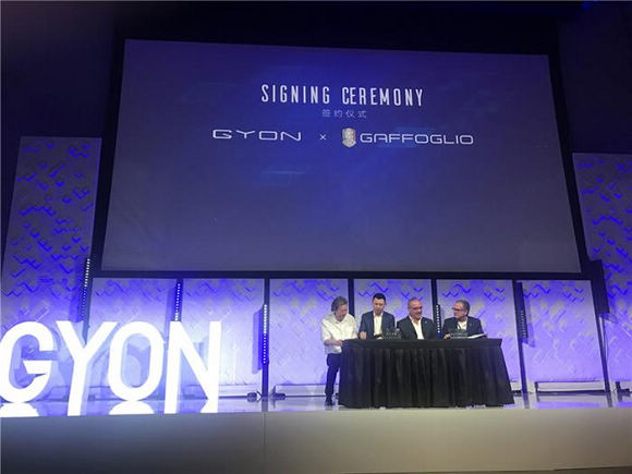 发布会上,GYON与世界著名产品开发公司GFMI举行了签约仪式,GFMI的设计将赋予GYON产品更多科技化、时尚化、国际化特点。