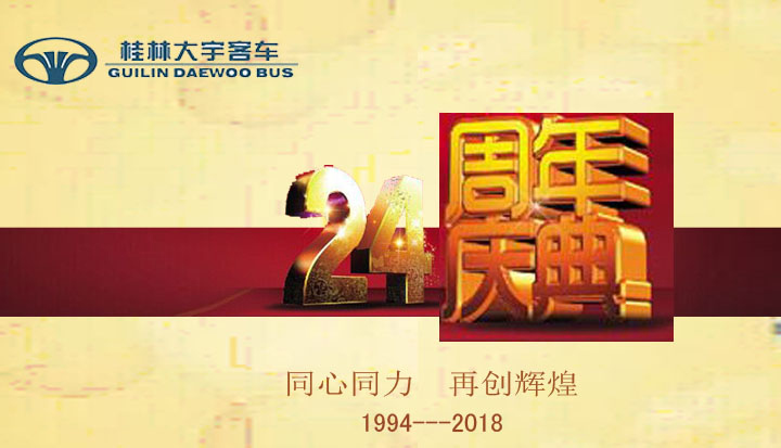 2018年8月8日,桂林大宇客车有限公司迎来了24岁生日,感谢各界朋友对桂林大宇一如既往的支持!一路有你,携手共进;同心同力,再创辉煌!