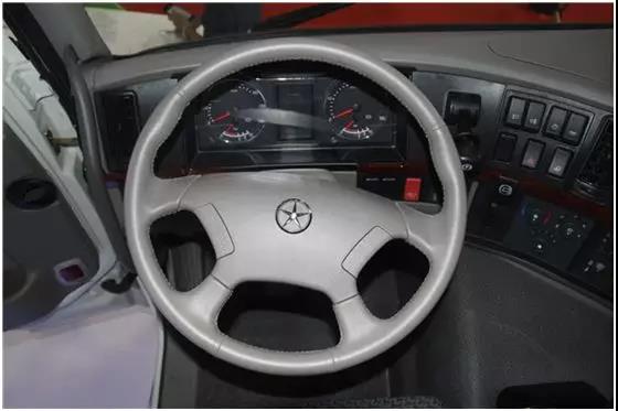 环绕式仪表台给人一种美的感觉,各种按钮都变得触手可及,人机工程学设计到位。灰色与黑色系调的搭配让内饰更加耐看耐脏,毕竟对于煤炭运输来说,耐脏更重要些。