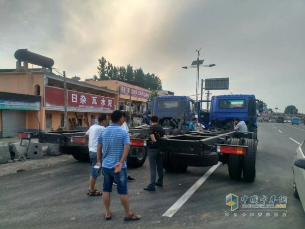 现场销售人员详细为用户讲解轩德6系6×2载货车