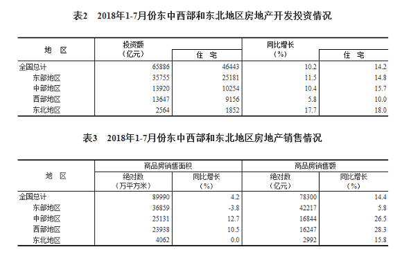 1-7月份,东部地区房地产开发投资35755亿元,同比增长11.5%,增速比1-6月份提高0.7个百分点;中部地区投资13920亿元,增长10.4%,增速回落1个百分点;西部地区投资13647亿元,增长5.8%,增速提高1.6个百分点;东北地区投资2564亿元,增长17.7%,增速与1-6月份持平。
