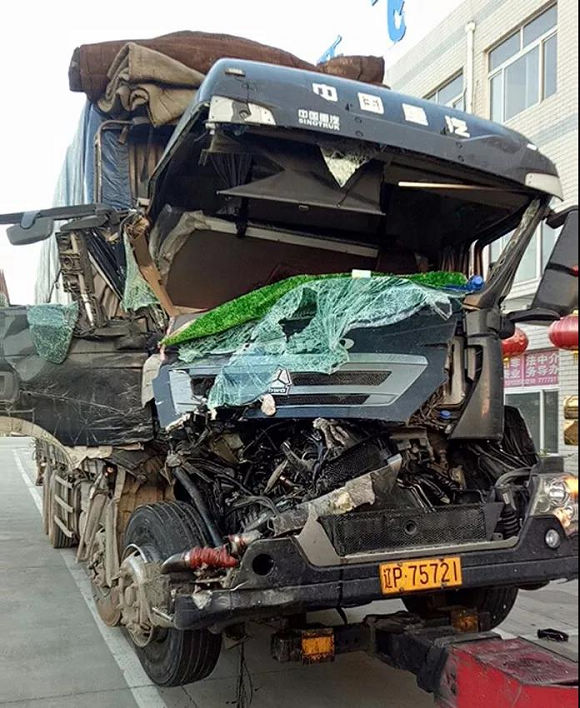由于事发地点离绥中距离较近,作为车主,颜海波得到消息后迅速赶到事故现场。“谢天谢地,除了前挡风玻璃碎片把驾驶员手臂扎破点皮之外,两位司机竟安然无恙。驾驶室完全后移大约30多公分,就是这小小的30公分,给驾驶员提供了保留生命的空间。”