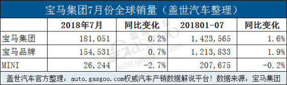 根据宝马集团官方发布的数据,7月份,宝马集团全球汽车销量继续增长,创历史同期新高,宝马品牌、MINI以及劳斯莱斯品牌共售出181,051辆新车,实现0.2%的微增;今年前7个月,宝马集团全球销量为1,423,565辆,较去年同期攀升1.6%。