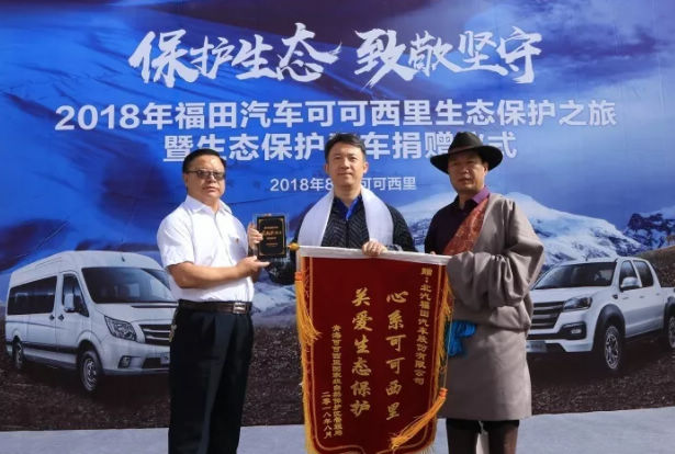 青海可可西里国家级自然保护区管理局向福田汽车 颁发表彰锦旗