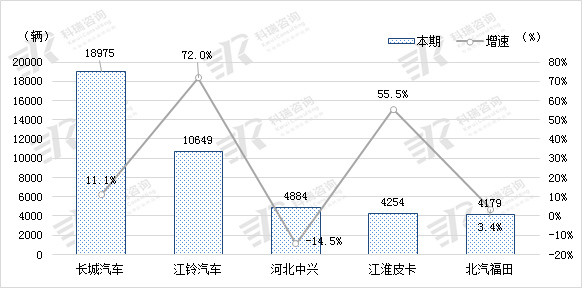 皮卡市场集中度高,前十大品牌占据超85%的市场份额,其中长城、江铃两大皮卡车企的市占率超过50%,在多款新品的助力下,销量同比分别增长11.1%和72%。