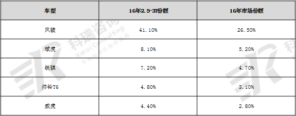 趋势1:2.5-3T皮卡成主要市场,16年占比达到64.6%