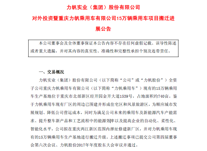 拿到12亿元搬迁补偿预付款,力帆股份称要修建新厂区