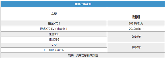 EV(未定名)于明年年中上市,首款MPV V70和JETOUR X量产版车型将于2020年推出。