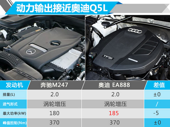 动力方面,新车将继续搭载M247型2.0T发动机,分为三种调校,最大功率分别为135kW、155kW和180kW,峰值扭矩分别为300Nm、350Nm和370Nm。传动系统预计仍将匹配9速手自一体变速箱。奔驰GLC-L搭载的高功率发动机,动力输出与奥迪Q5L搭载的2.0T高功率发动机十分接近。