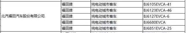 福田欧辉入选工信部第311批 《道路机动车辆生产企业及
