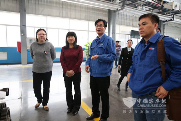 周艳萍一行首先到玉柴厂区、车间参观考察,了解玉柴集团的整体产业格局、产业链发展现状、人才优势、研发实力、产品优势、服务优势和企业文化。