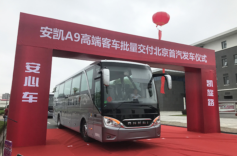 在此次发车仪式上,首汽集团旅游车分公司总经理李阳表示:“本次采购的40辆A9客车是安凯公司的战略级产品,拥有优良的血统、高端的配置以及领先的技术水平,而这些都满足了首汽对接待用车的高标准要求。”