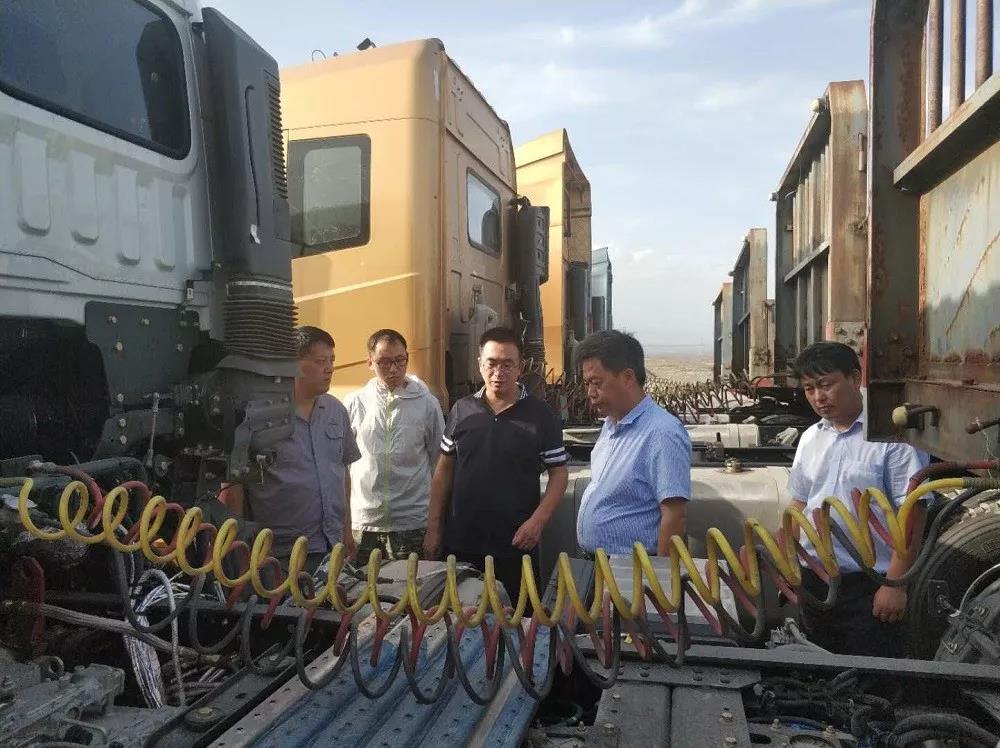 8月22日,集团公司董事长刘汉如在走访新疆市场期间,还专程来到吐鲁番试验基地,慰问在当地做高温试验的“三高”试验团队,详细询问各台车的配置情况、试验情况及各项试验进度。发动机分公司副总经理马明、底盘研究所副所长马永兵详细向董事长详细汇报了试验具体进程。