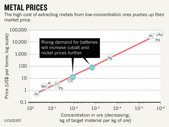 研究人员警告说,必须尽快找到钴、镍和其他稀有金属的替代品,以满足电动汽车电池日益增长的需求,因为它们的稀缺正在推高价格:在过去两年中,钴、镍和其他稀有金属的价格翻了两番,从每公斤22美元涨到了每公斤81美元。鉴于生产商偷工减料、违反环保和安全法规,科学家和工程师们被敦促开发廉价、常见的金属,如铁和铜,作为潜在的替代品。