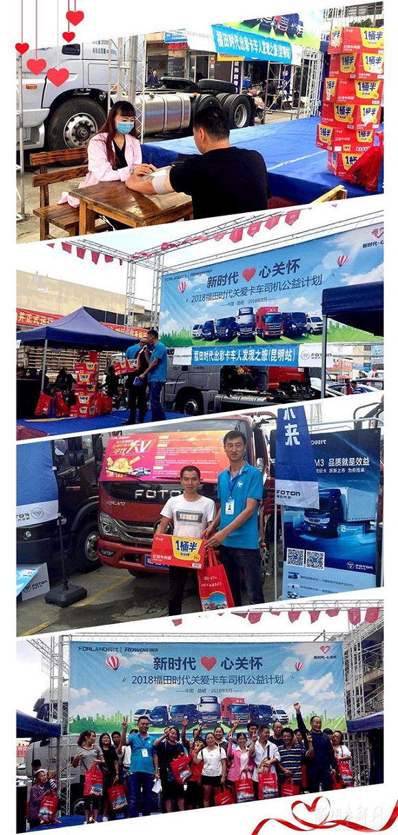 关爱卡车司机公益计划”,已在潍坊、郑州等地建立了“福田时代司机之家”,所有卡友可以在这些站点免费休息、娱乐、进行健康检查,并可免费获取物流信息。同时,福田时代2018年计划送出1000台电子血压仪以及5000份单份保额为100万人民币的卡车司机人身意外保险,将对卡车司机的关爱行动全面升级。