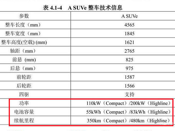 这款A SUVe车型长宽高分别为4565×1845×1621mm,轴距达到2765mm,这样的车身尺寸也符合市面上主流紧凑SUV的车身数据。