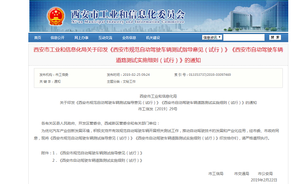 西安工信局发布自动驾驶车辆测试指导意见和实施细则的