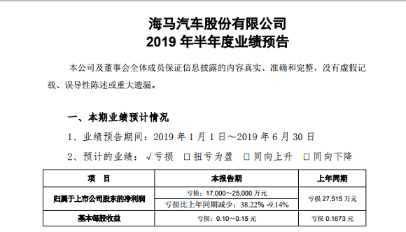 海马汽车预计上半年净利润亏损1.7-2.5亿元