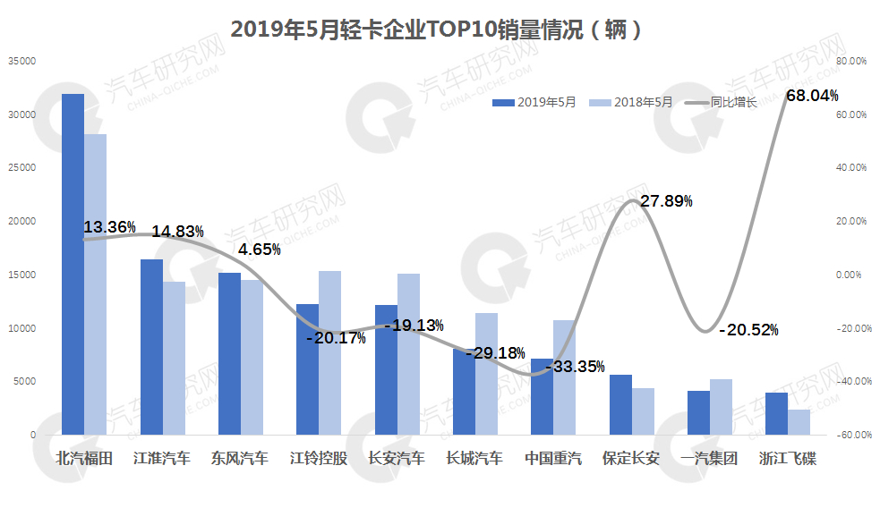 2019年5月轻卡销量:江淮终止三连降 东风汽车五连涨
