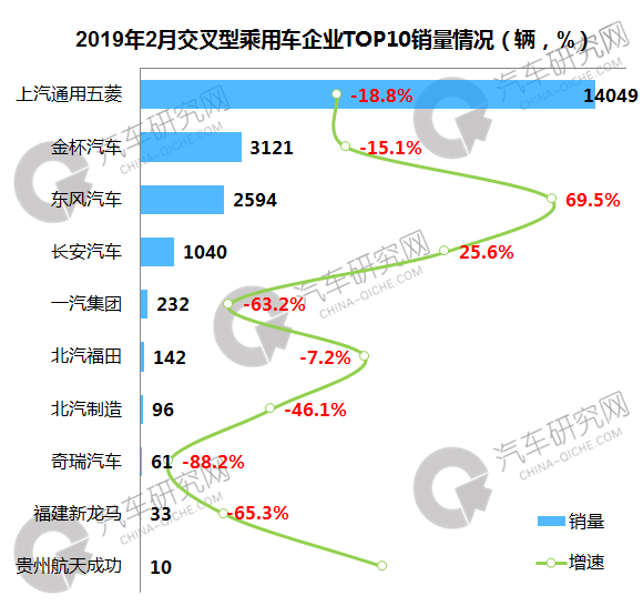 2月交叉型乘用车市场:上汽通用五菱雄居榜首,东风增幅