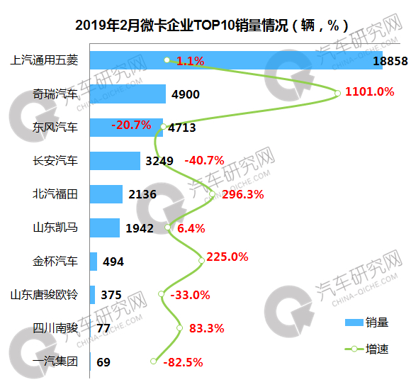 2月微卡市场:五菱市场份额超6成 奇瑞微卡暴增12倍