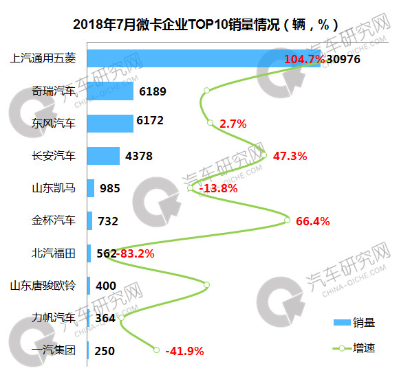 2018年7月微卡企业: 上汽通用五菱销量增幅最大 增长1