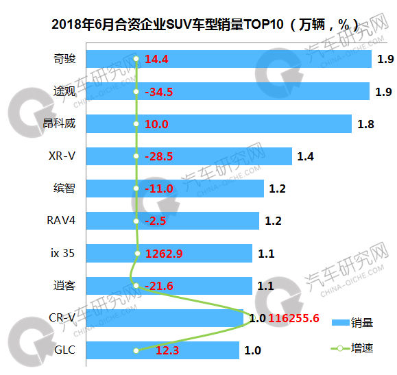 据乘联会公布最新数据,其中SUV市场共计销售74.6万辆,同比仅微增0.5%,占比市场份额40.7%。6月合资SUV销量前十车型中,东风日产奇骏为最畅销车型,单月销售1.9万辆,排名第一,同比增长14.4%;上汽大众途观销量紧随其后,共计销售1.88万辆,同比下滑34.5%。主要车型中,北京 [详细]