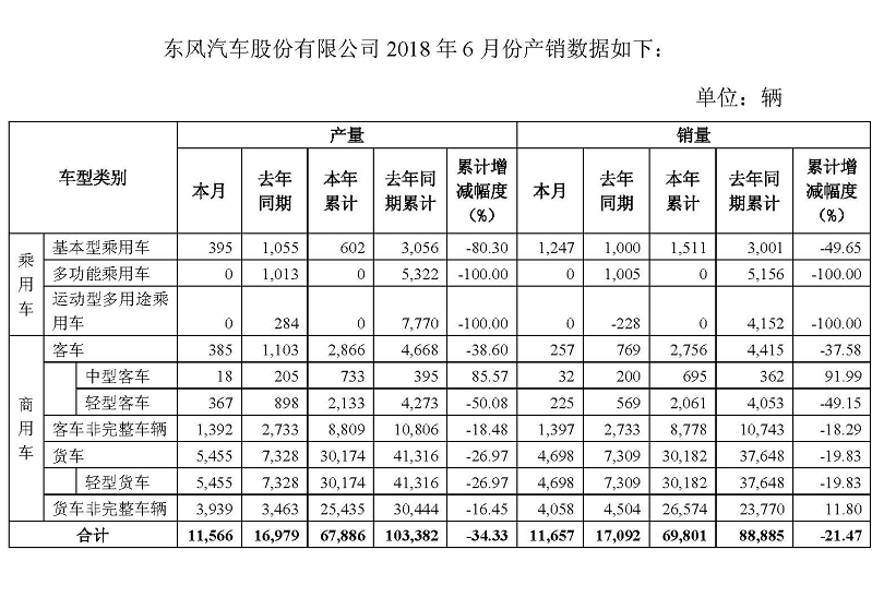 2018-07-06 20:43:19 数据快讯    乘用车    卡车    客车    经营业绩