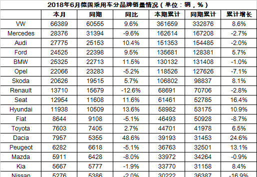 2018年上半年德国乘用车累计销量189.9万辆,同比增长2.9%。 [详细]