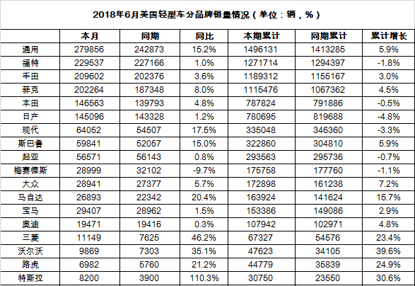 2018年上半年美国轻型车累计销量863.4万辆,同比增长2.2%。 [详细]