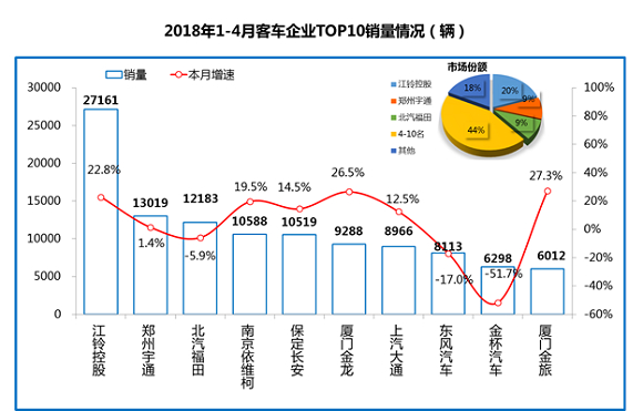 2018年1-4月国内大型客车行业产销分析