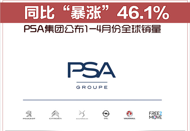 PSA集团公布1-4月份全球销量 同比“暴涨”46.1%
