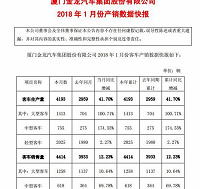 2月7日,厦门金龙汽车集团股份有限公司披露产销数据快报,数据显示,金龙汽车1月销售各类客车4414辆,同比增长12.23%;1月份生产各类客车4193辆,同比增长41.7%; [详细]