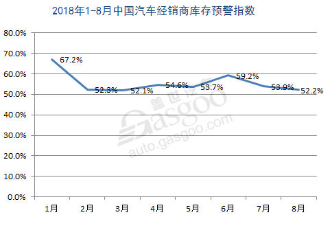 日前,中国汽车流通协会发布的最新一期“中国汽车经销商库存预警指数调查”VIA(Vehicle Inventory Alert Index)显示,2018年8月汽车经销商库存预警指数为52.2%,环比下降1.7个百分点,同比上升5.1个百分点,库存预警指数位于警戒线之上。 [详细]