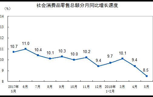 2018年5月份社会消费品零售总额增长8.5%