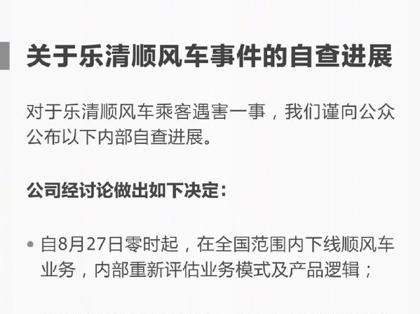 日前,滴滴官方宣布8月27日零时起,全国范围下线顺风车业务,同时免去顺风车高管职务。 [详细]