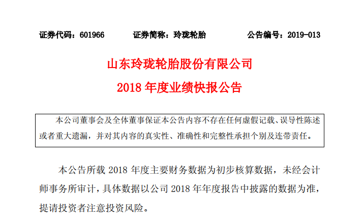 玲珑轮胎发布2018年业绩公告,公司2018年度实现营业收入150亿元,较上年同期增长9.94%,公司2018 年实现营业利润 132776.27 万元,较上年同期增加21210.89万元,同比增长19.01%。归属于上市公司股东的净利润125832.33万元,较上年同期增长20.09%。公司2018年末总资产2582343. [详细]