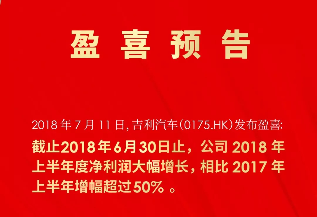 2018上半年净利润增幅超50% 吉利汽车发布盈喜预告
