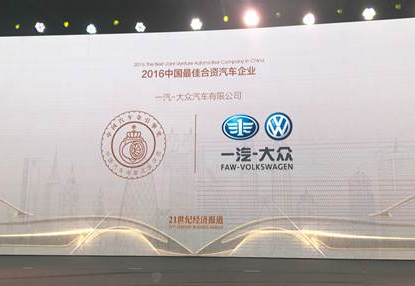 一汽-大众荣获“2016中国最佳合资汽车企业奖”