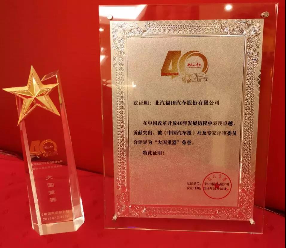 福田汽车荣获 “大国重器奖”,实至名归!