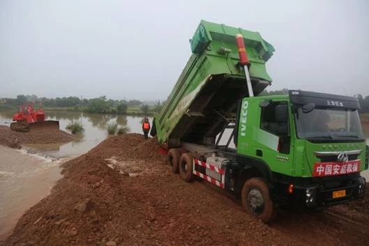 7月9日下午受急流顶冲影响,江西省鹰潭市马荃圩堤迎水面出现滑坡塌方,圩堤下游的1.15万亩农田和1.86万人被危情笼罩,情况十分危急。灾区就是战场,在得知险情报告后,相关部门迅速调集800余人、近百台车辆及其他防汛物资,第一时间赶赴救援现场。在本次救援工作中,一辆辆高大而熟悉的绿色身影,不停往返于砂石料与堤坝间——上汽红岩自卸车队,再一次出现在抗洪救援第一线! [详细]