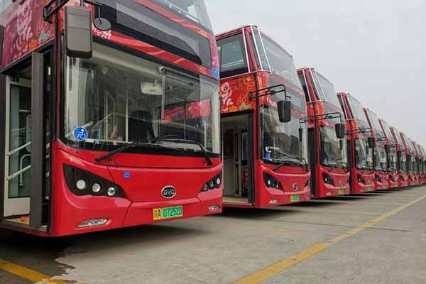 “中国红”遇见“西安年” 全球最大比亚迪纯电动双层