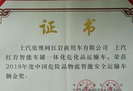 助力化工物流 上汽红岩智能危化车获“金奖”