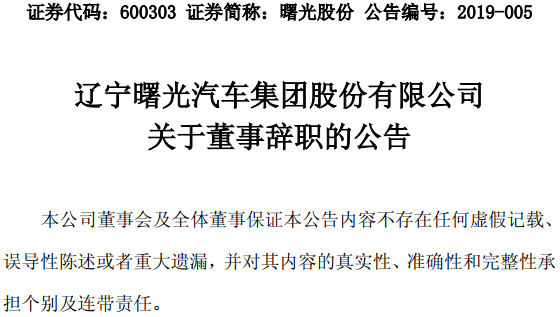 辽宁曙光汽车集团股份有限公司董事会收到公司董事马宁先生递交的辞职报告。 [详细]
