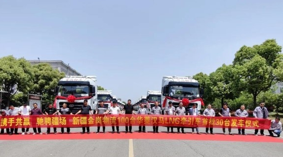汉马科技首批30台华菱汉马H9 LNG牵引车成功交付金岗物流