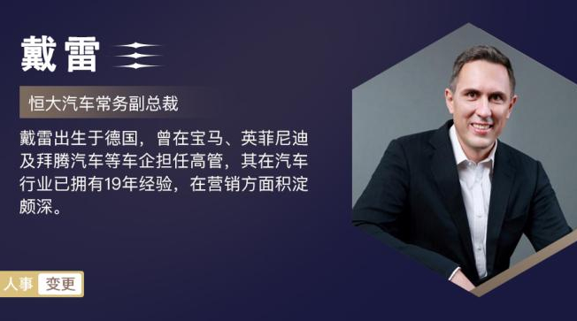 担任常务副总裁 戴雷正式加盟恒大汽车