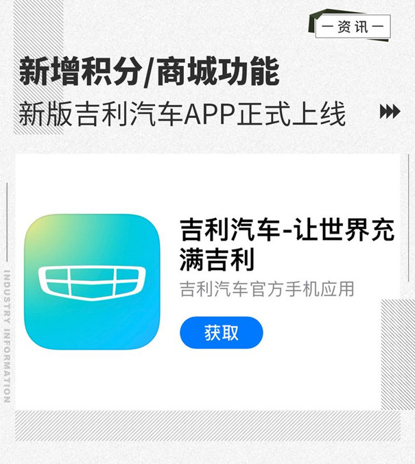 5月20日,吉利汽车首发全新吉利汽车APP,新增积分和商城功能。打造集分享、体验、积分商城于一体的品牌专属社交平台,成为首个开放发布的用户共创共享阵地,持续建立长效沟通机制。此外,吉利汽车集团CEO淦家阅也带来宠粉表白福利,派发积分红包。 [详细]