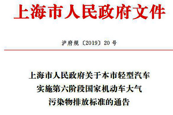 上海市4月19日发布了《上海市人民政府关于本市轻型汽车实施第六阶段国家机动车大气污染物排放标准的通告》,通告表示,自2019年7月1日起,对在上海市办理注册登记(含外省市转入)的轻型汽车实施国家第六阶段机动车大气污染物排放标准。 [详细]