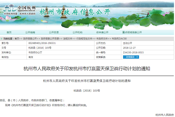杭州市政府印发了《杭州市打赢蓝天保卫战行动计划的通知》,指出2019年7月1日起,提前实施国六排放标准。推广使用达到国六排放标准的燃气车辆。 [详细]